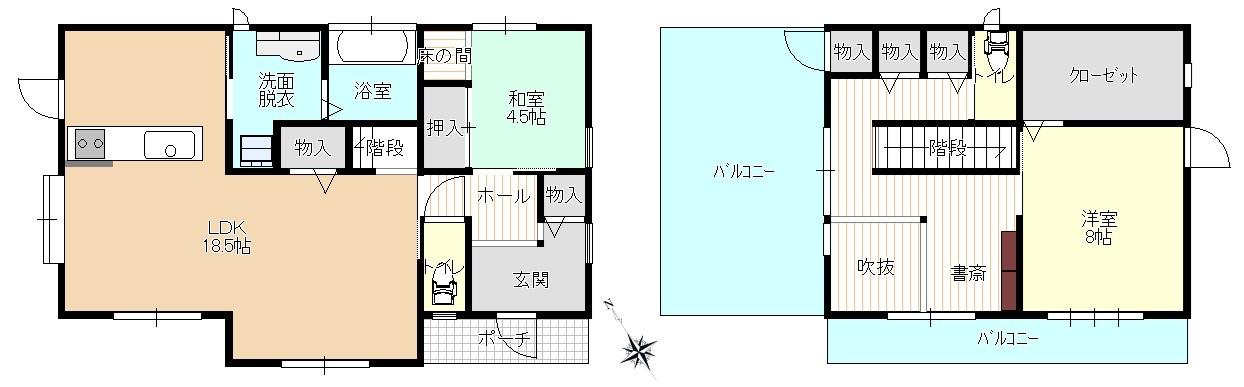間取は2LDKにウォークインクローゼットが付いており、二階の吹き抜けあたりに海が見える素敵な書斎スペースが設けられております。そしてリビングの壁には造り付けのキャットタワーがついており、猫ちゃんが二階まで上がれるようにしてあります。猫ちゃんたちの上下運動や遊び場として機能されておりインテリアに溶け込んだデザインで、空間を圧迫しません。