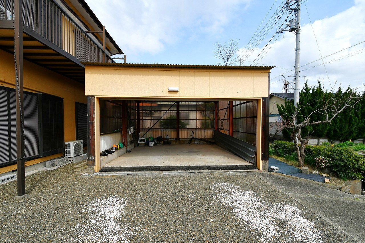 敷地内には電動ガレージが備わっており、車の出し入れがしやすく、雨の日でも安心して利用できます。境界はブロックで囲まれているため、敷地の区画が明確で管理もしやすい点が特徴です。また、庭には柿・レモン・キンカン・ツツジ・梅など、季節ごとに楽しめる木々が植えられており、自然の移ろいを身近に感じられる魅力があります。庭仕事が好きな方や、家庭菜園を楽しみたい方にもおすすめです。