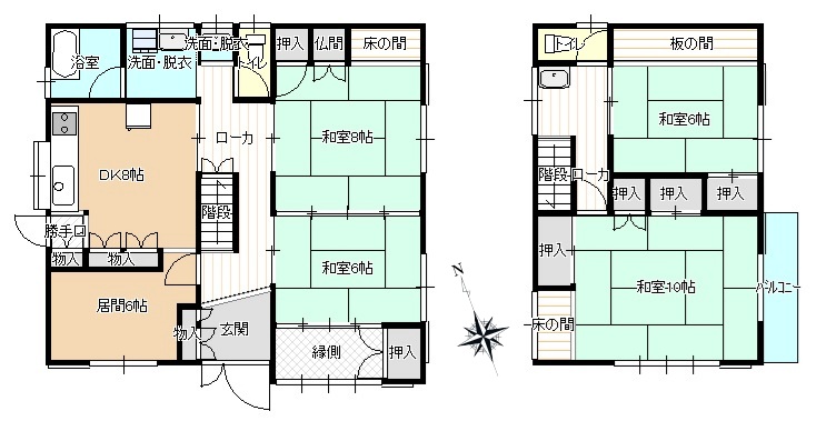 • 1階和室 6帖と8帖の続き間になっています 南側には3帖の縁側もあります