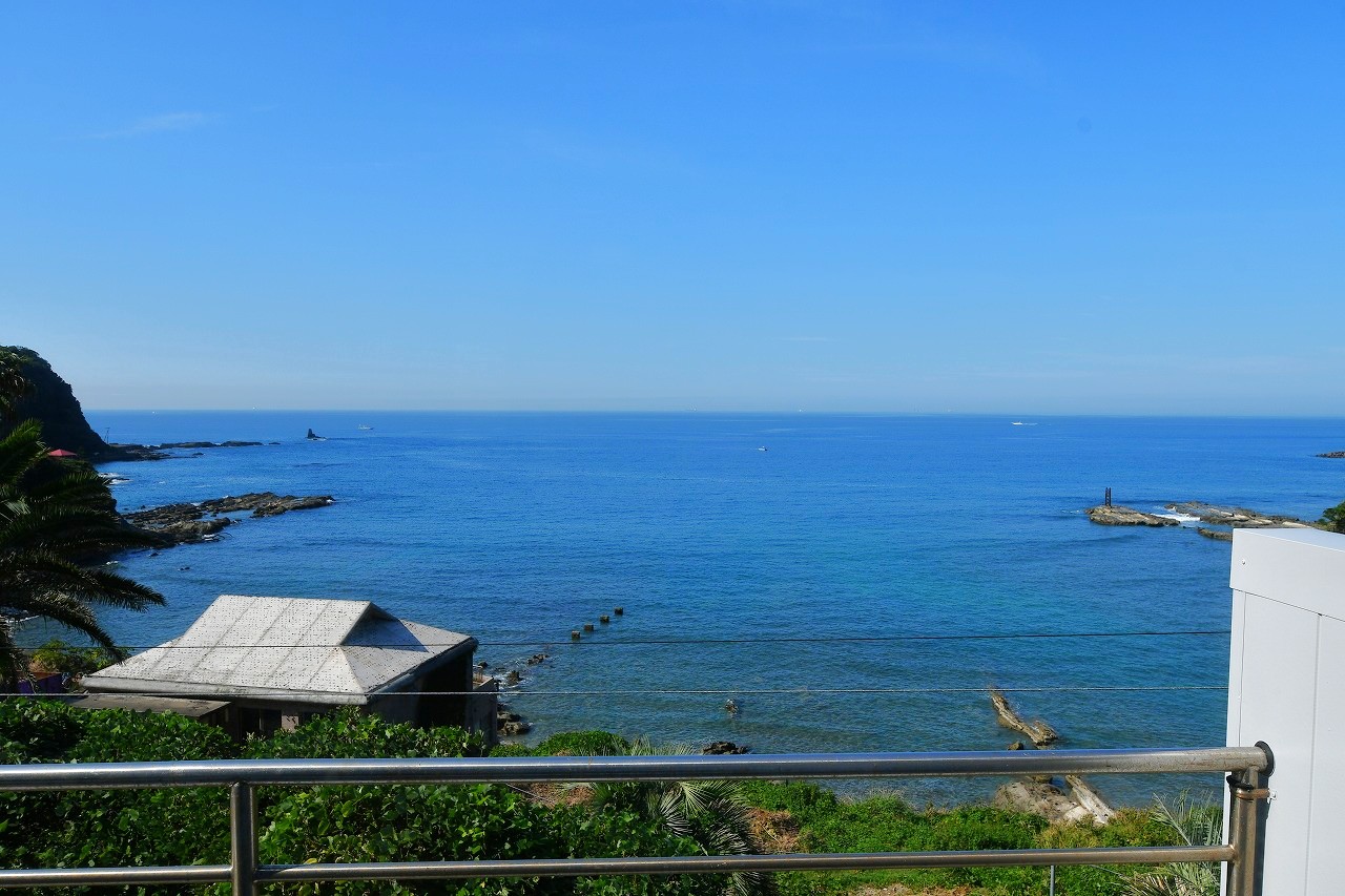 鋸南町の高台に広がる「アルカディア別荘分譲地」。その中でもひときわ眺望に恵まれた一画に、まるで海の上に浮かんでいるような感覚を味わえる家があります。